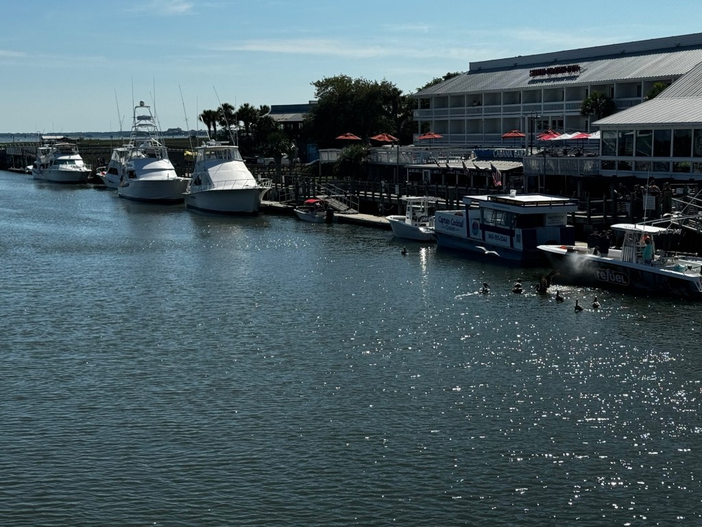 The first stop was to Shem Creek. This creek was the location of many scenes from the Netflix TV series Outer Banks that I was really excited to see. I love that series and needed to see this. There are many bars and restaurants that line up and down this creek and yachts and small boats dock at the bars with marshes all around. They have such restaurants as Water’s Edge (that has a really nice hotel right next to it), and then on the other side is Tavern and Table, Red’s Iced House and Saltwater Cowboy. We were dropped off at Water’s Edge, but the outdoor patio didn’t open until 4p and it was 3p.