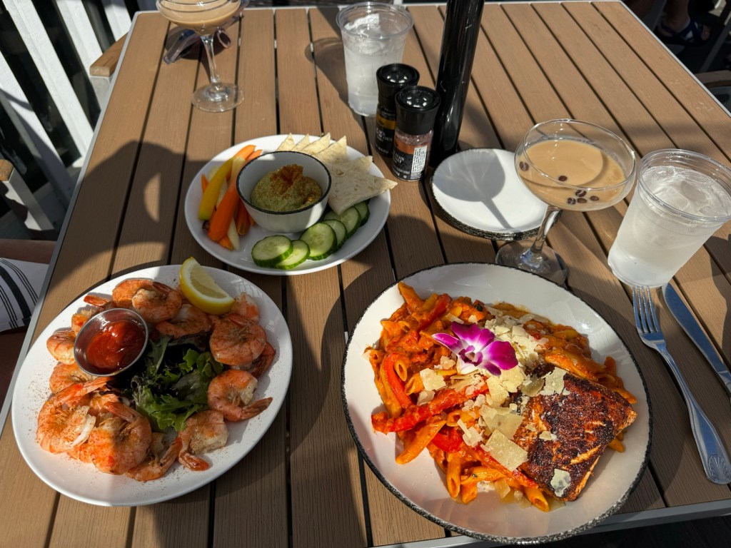 Once it was 4p, we headed across the bridge again back to Water’s Edge. We got a patio seat overlooking Shem Creek on a balcony seat and had some amazing pasta salmon and shrimp. We also had to throw in our honorary espresso martini. Shoutout to my other cousin Janelle that was throwing the down like Tic-Tac’s on our Cozumel trip all week. Here’s to you, Janelle, thanks for starting the trend and we’ll keep it alive and well for ya.