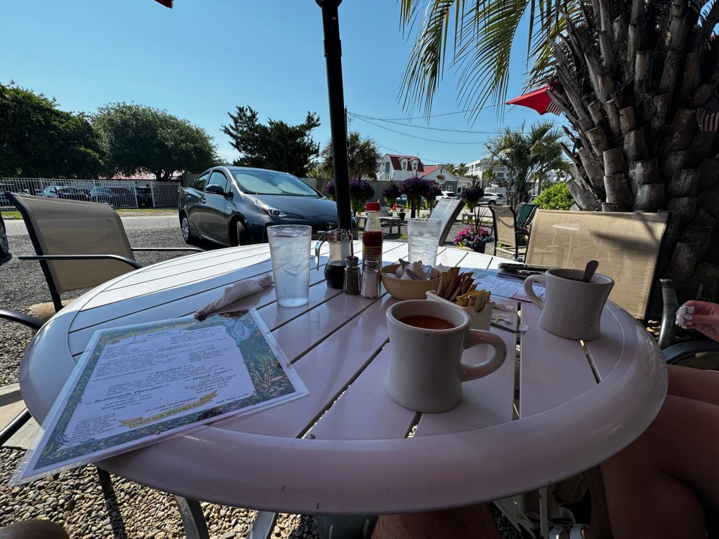 Before hitting the beach, however, I looked up a close breakfast cafe in walking distance of where our beach access point was at Coconut Joe’s. I found the Seabiscuit Cafe and it was the perfect place. Such a great idea to Uber as well as parking is at a premium around the beach, especially around the holiday. We walked right on over and got a seat outside.
